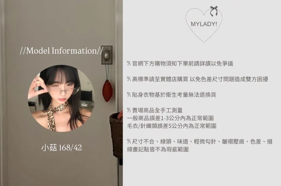 • 商品採現貨+預購 不接急單!!!•詳細貨況、預計到貨請私訊官方LINE客服查詢•韓國款商品因屬批市代購性質、故無提供鑑賞期•貼身衣物(小可愛、附bra上衣、內褲、襪子)無提供退換貨•以上更詳細購物需知於官網頁尾下方連結 購買視同同意白 黑 商品平拍
