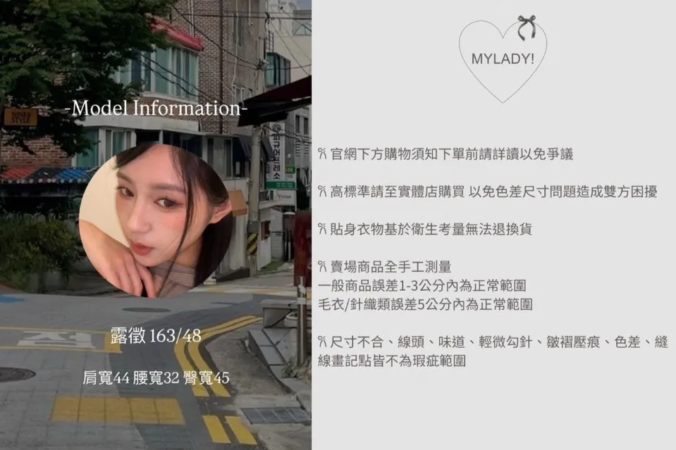 • 商品採現貨+預購 不接急單!!!•詳細貨況、預計到貨請私訊官方LINE客服查詢•韓國款商品因屬批市代購性質、故無提供鑑賞期•貼身衣物(小可愛、附bra上衣、內褲、襪子)無提供退換貨•以上更詳細購物需知於官網頁尾下方連結 購買視同同意白 黑