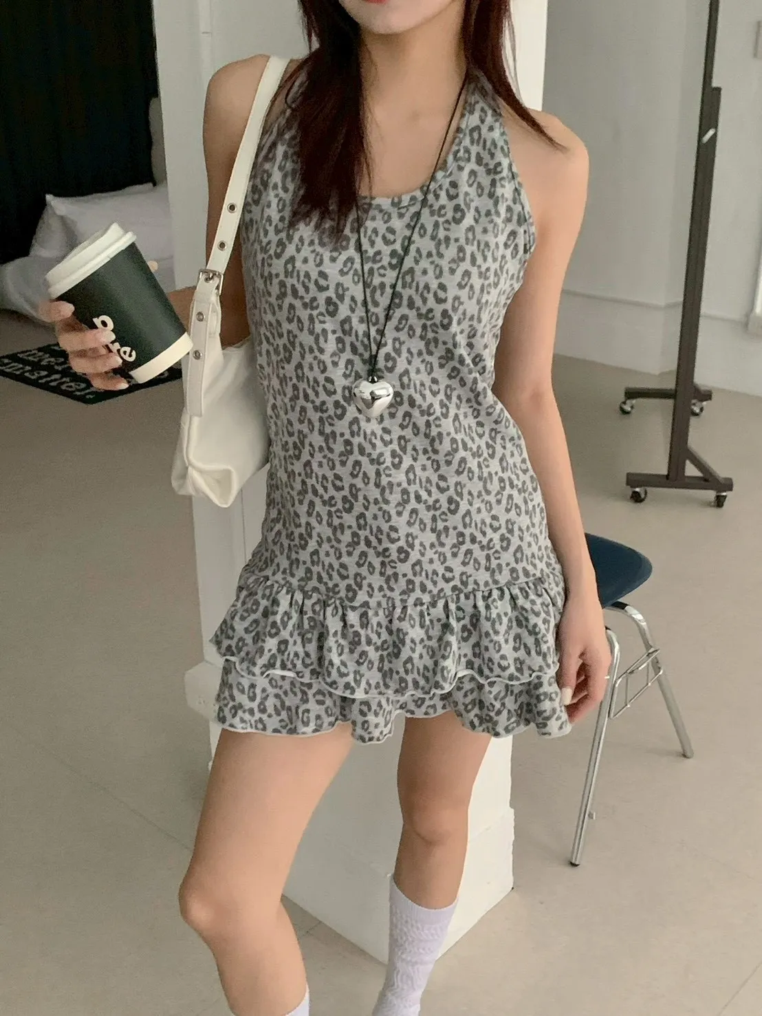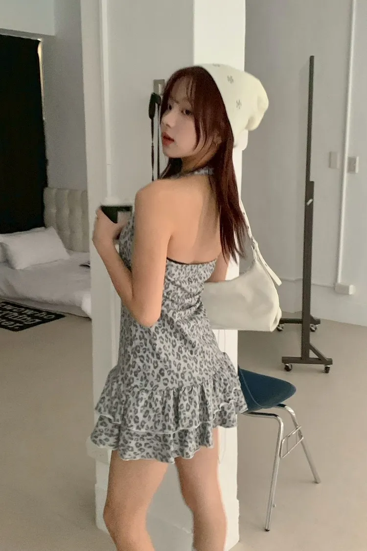 掛脖露背+荷葉下襬設計