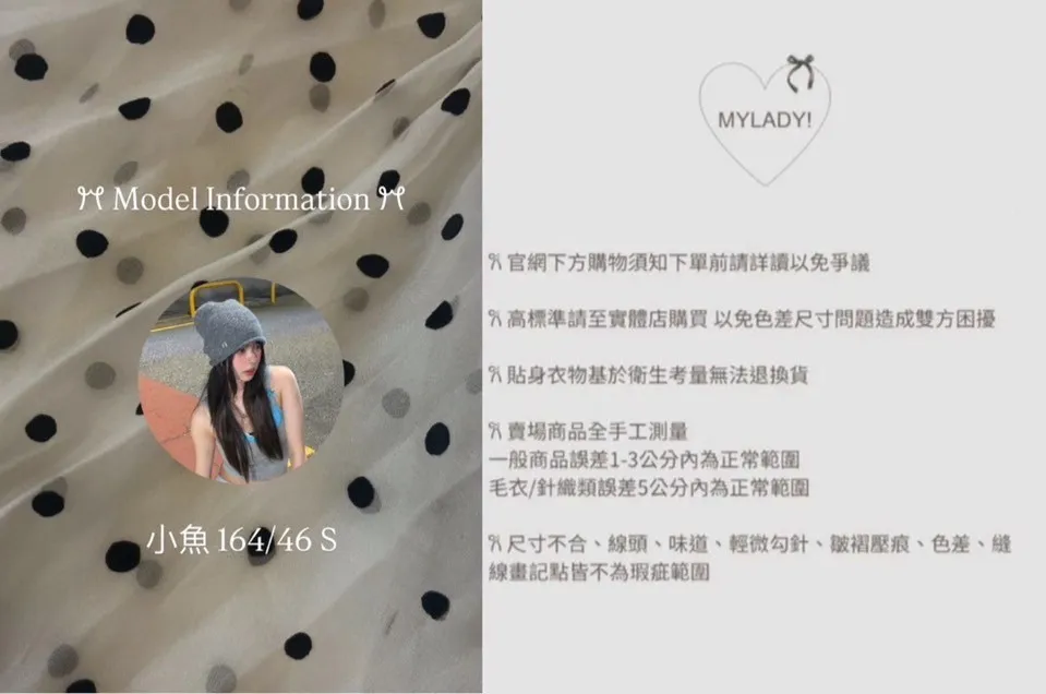•貼身衣物(小可愛、附bra上衣、內褲、襪子)無提供退換貨