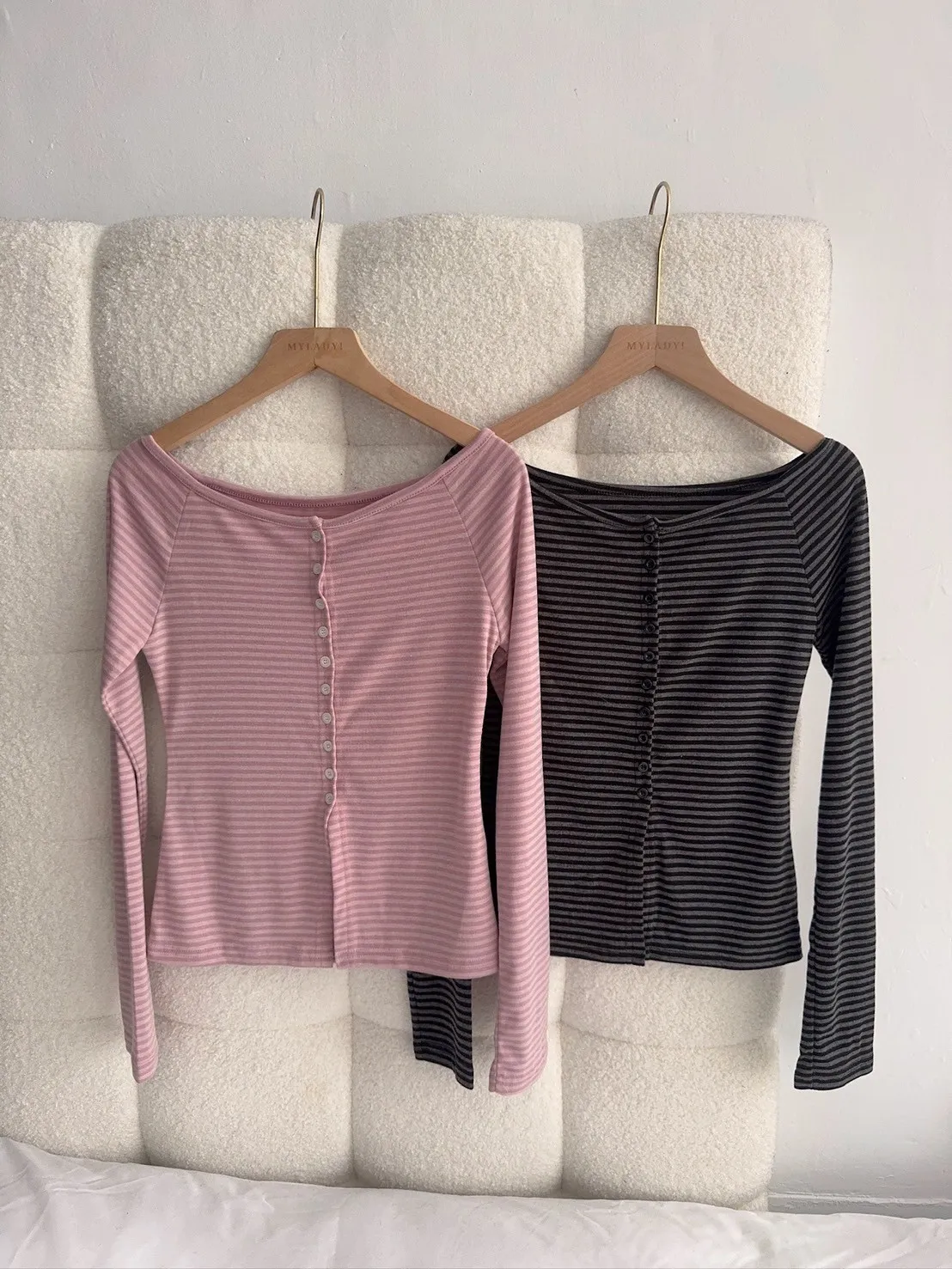 • 商品採現貨+預購 不接急單!!!•詳細貨況、預計到貨請私訊官方LINE客服查詢•韓國款商品因屬批市代購性質、故無提供鑑賞期•貼身衣物(小可愛、附bra上衣、內褲、襪子)無提供退換貨•以上更詳細購物需知於官網頁尾下方連結 購買視同同意商品介紹平口條紋上衣 材質超舒服💖 下擺還有開衩 讓腿更長比例更好粉紅 黑灰 商品平拍