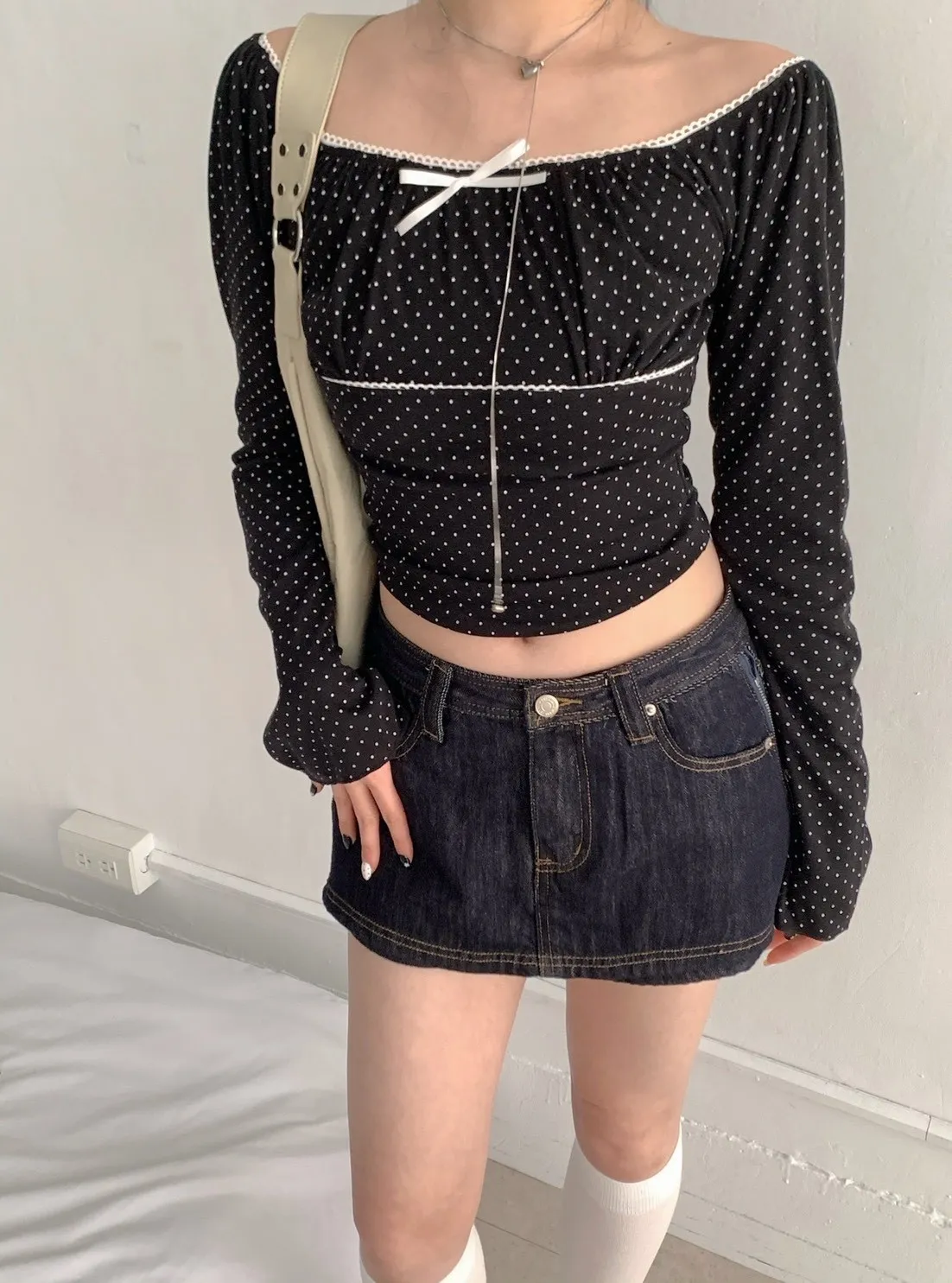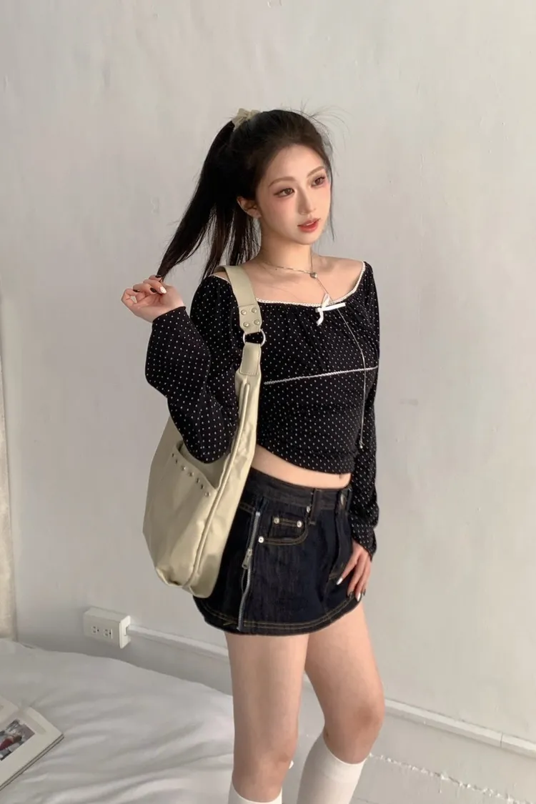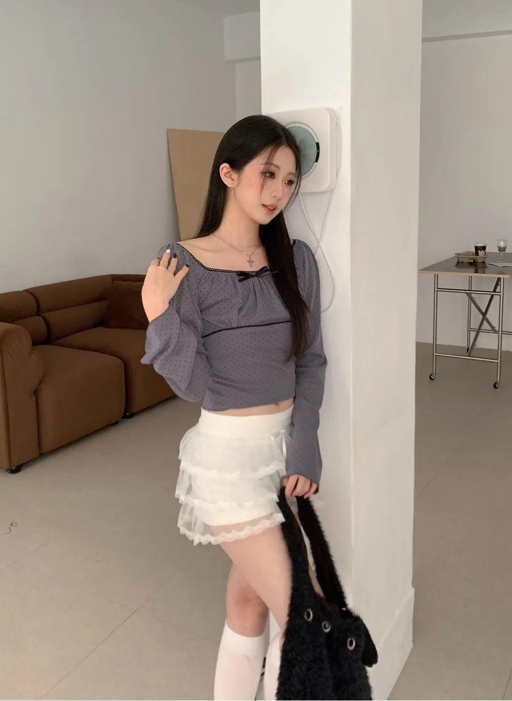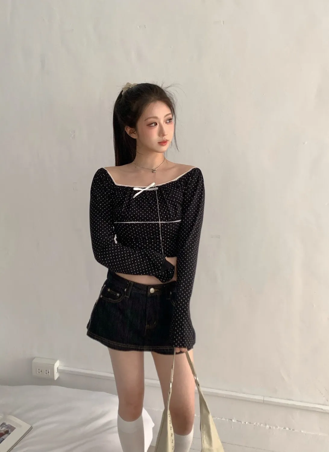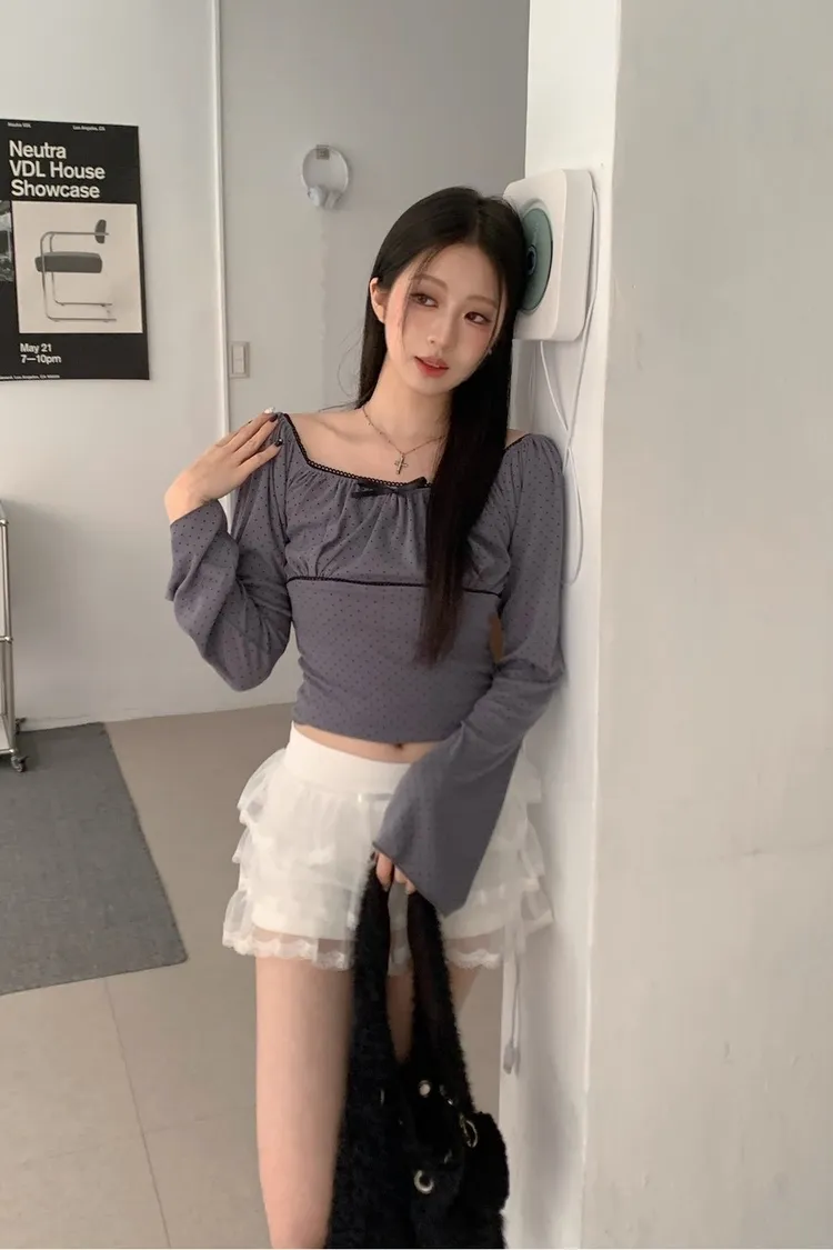 • 商品採現貨+預購 不接急單!!!•詳細貨況、預計到貨請私訊官方LINE客服查詢•韓國款商品因屬批市代購性質、故無提供鑑賞期•貼身衣物(小可愛、附bra上衣、內褲、襪子)無提供退換貨•以上更詳細購物需知於官網頁尾下方連結 購買視同同意商品介紹領口滾邊蕾絲 可以拉一字領 袖子喇叭袖 布料有彈性~白 灰 奶茶 黑 商品平拍