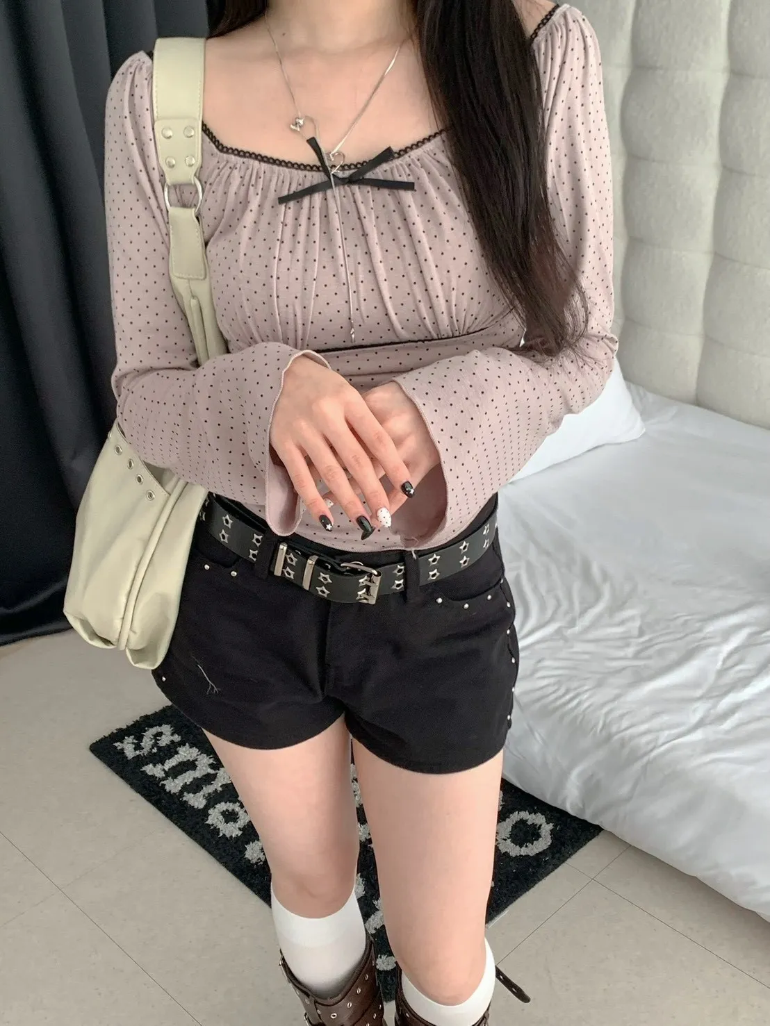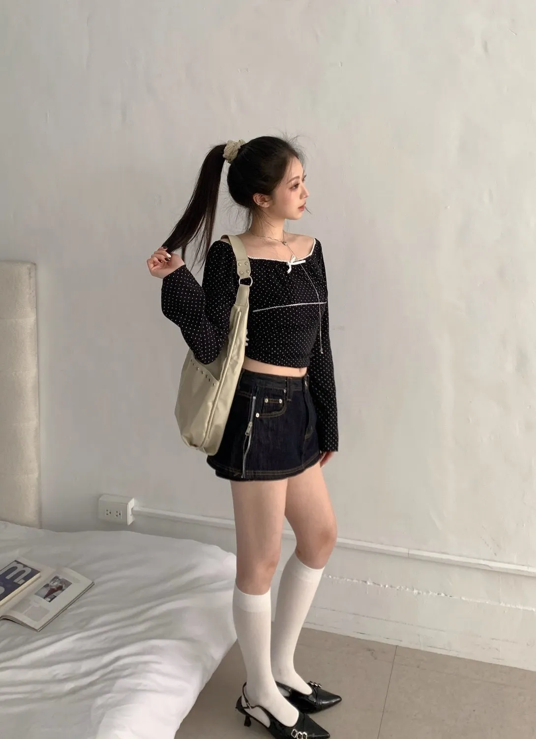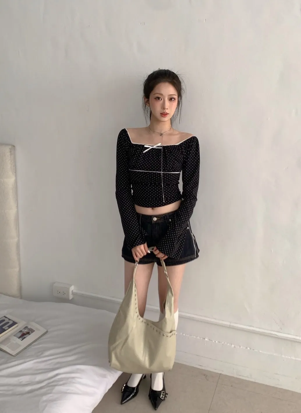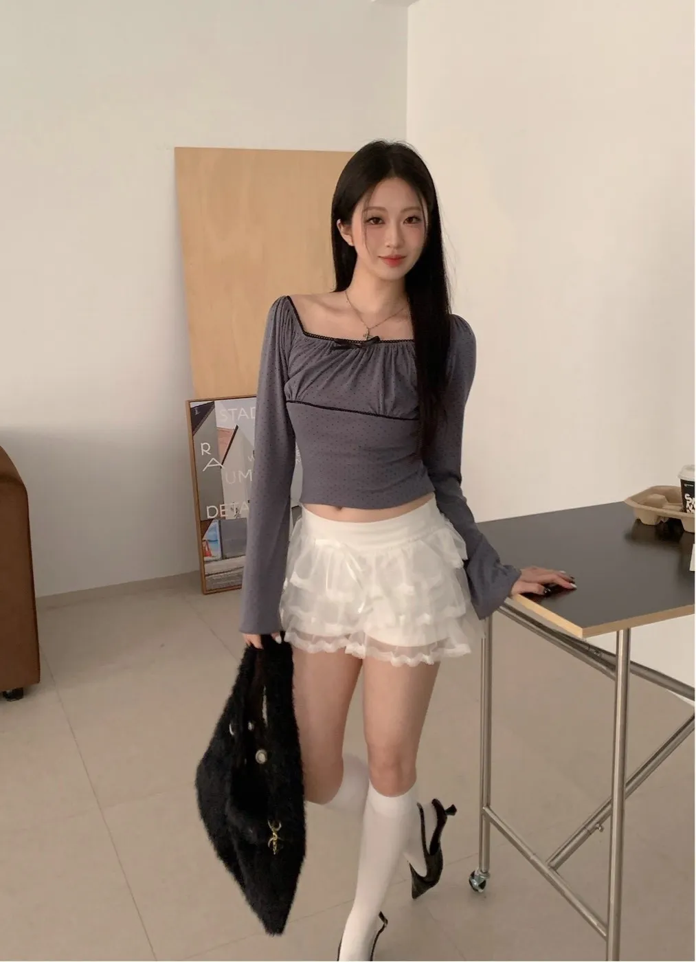 • 商品採現貨+預購 不接急單!!!•詳細貨況、預計到貨請私訊官方LINE客服查詢•韓國款商品因屬批市代購性質、故無提供鑑賞期•貼身衣物(小可愛、附bra上衣、內褲、襪子)無提供退換貨•以上更詳細購物需知於官網頁尾下方連結 購買視同同意商品介紹領口滾邊蕾絲 可以拉一字領 袖子喇叭袖 布料有彈性~白 灰 奶茶 黑 商品平拍