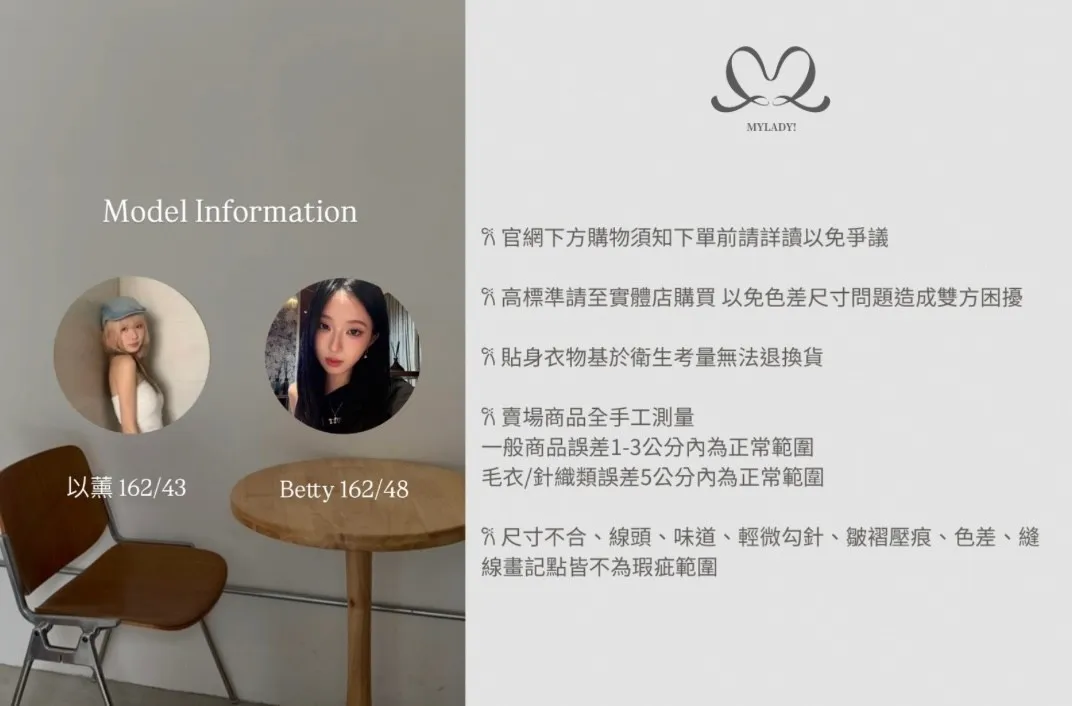 •貼身衣物(小可愛、附bra上衣、內褲、襪子)無提供退換貨