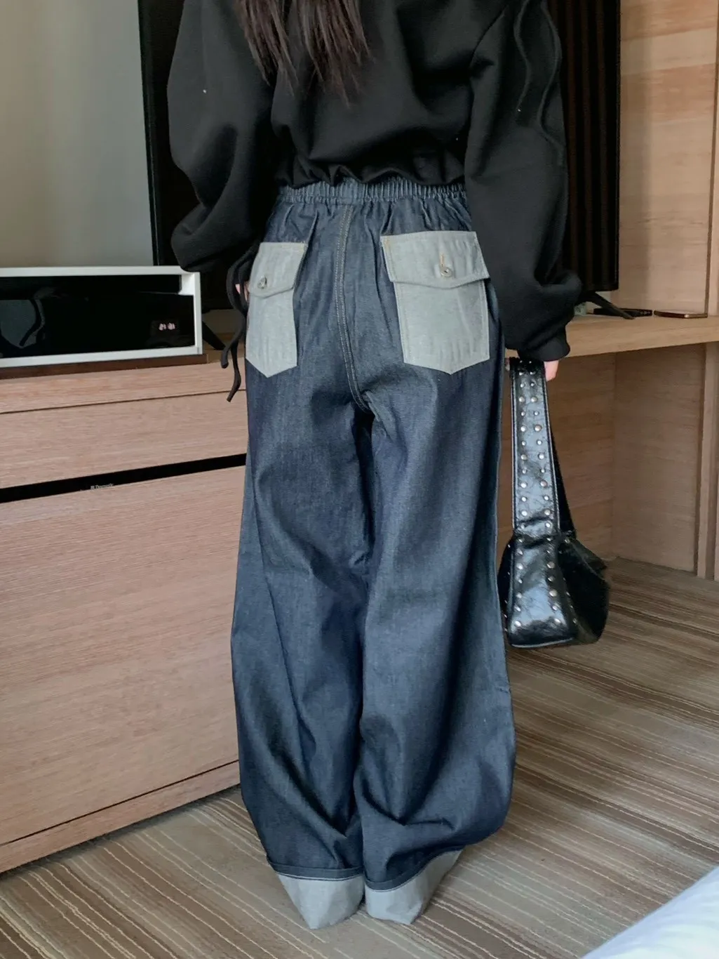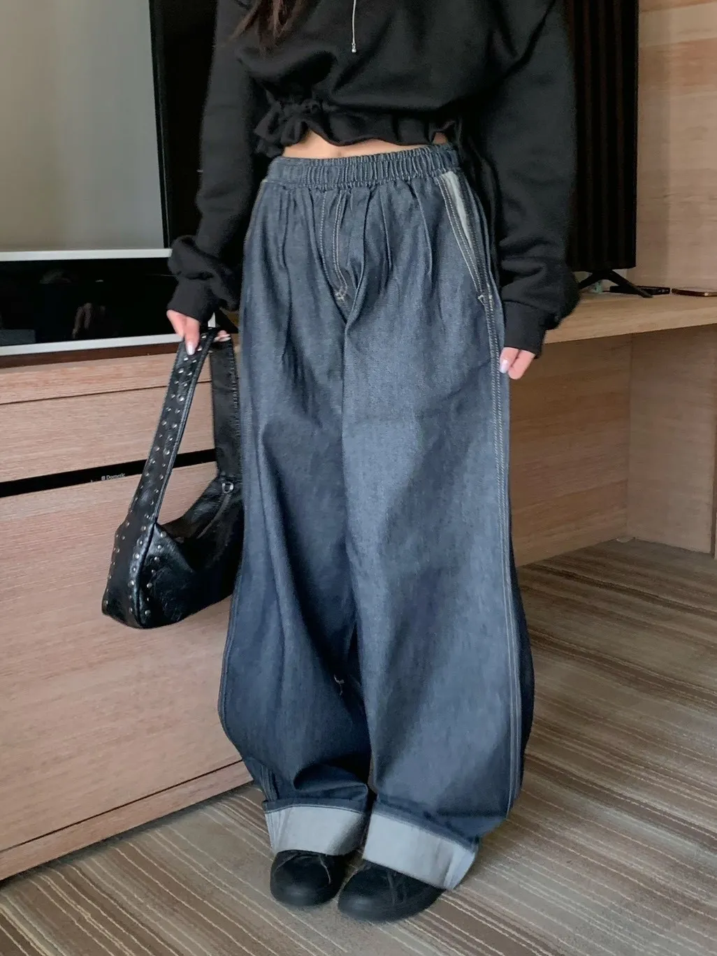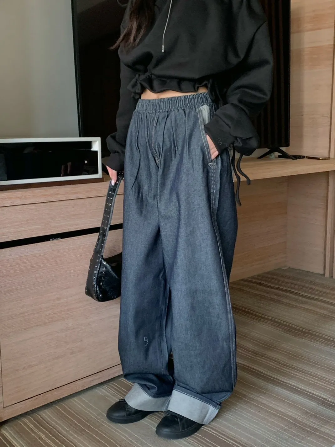 【韓國直送】長腿寶貝!原色反摺牛仔寬褲